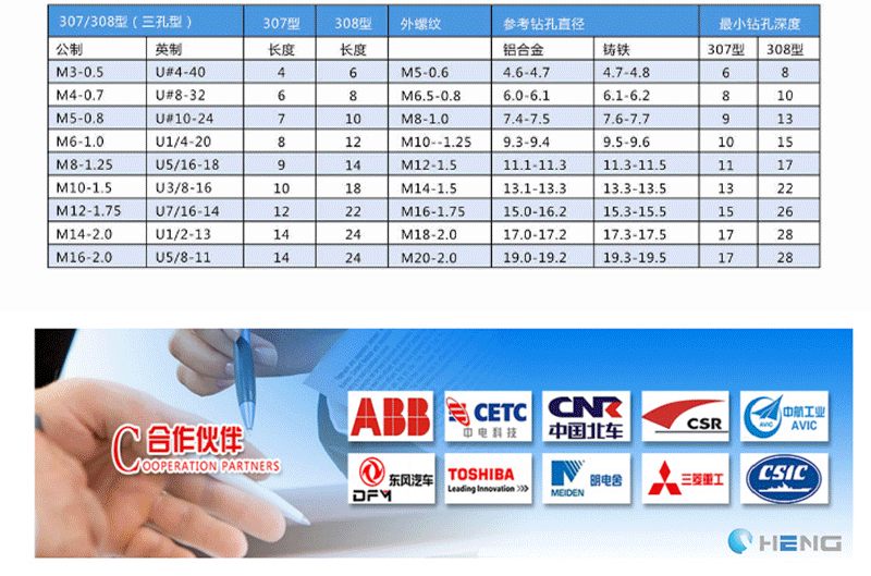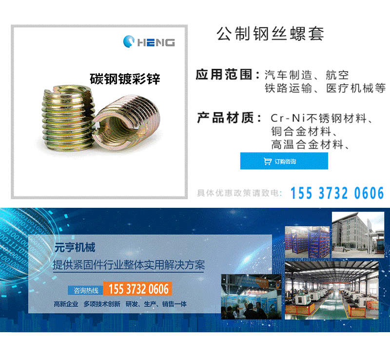 使用標有規定螺紋規格的鋼絲螺套專用絲錐攻絲,攻絲的長度必須超過鋼絲螺套長度,對于通孔,要全部攻絲;攻絲的精度決定終標準內螺孔的公差帶,使用者要適當地選擇攻絲方法和潤滑,盲孔攻絲要適當用力, 以防折斷絲錐。攻絲后,螺紋孔應清理,一般用壓縮空氣噴槍吹,盲孔時還應使用帶徑向孔的長噴槍自下而上清理, 也可以用清洗的方法清理螺紋孔。螺紋孔精度高時,應用專用鋼絲螺套底孔塞規進行檢查。