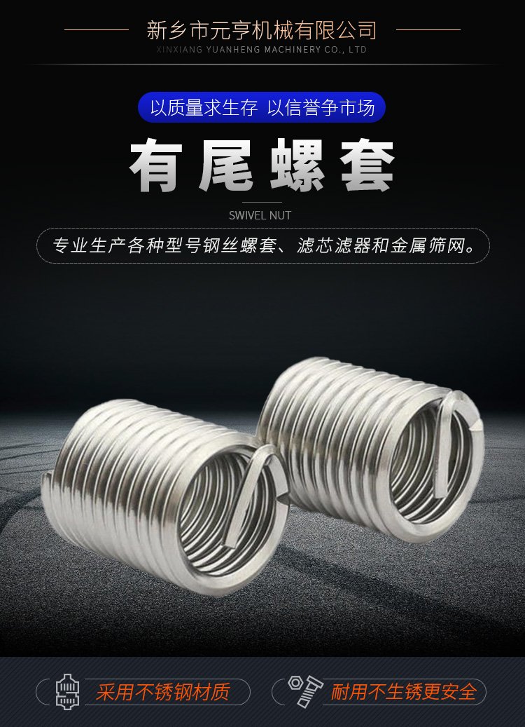 鋼絲螺套在安裝后,一般通孔都要求將尾柄去除掉,具體方法是用沖斷器對準安裝柄,用200g的榔頭猛打一下,即可去除,對于18X2.5以上的粗牙絲套和14X1.25以上的細牙絲套,用尖嘴鉗上下彎曲安裝柄就能折斷。