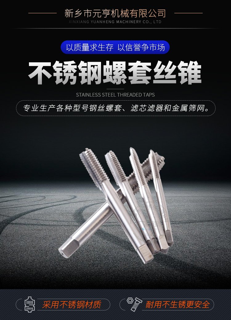 可根據(jù)用戶需要設(shè)計(jì)、制造各種特殊品種的螺紋底孔絲錐,例如在軟鋁,紫銅上攻絲的機(jī)用、手用擠壓絲錐,單支普通鋼攻絲的專用機(jī)用絲錐、不銹鋼攻絲絲錐、用于盲孔的平底絲錐、螺旋槽絲錐、螺尖絲錐等。鋼絲螺套絲錐、螺紋護(hù)套絲錐的選擇